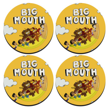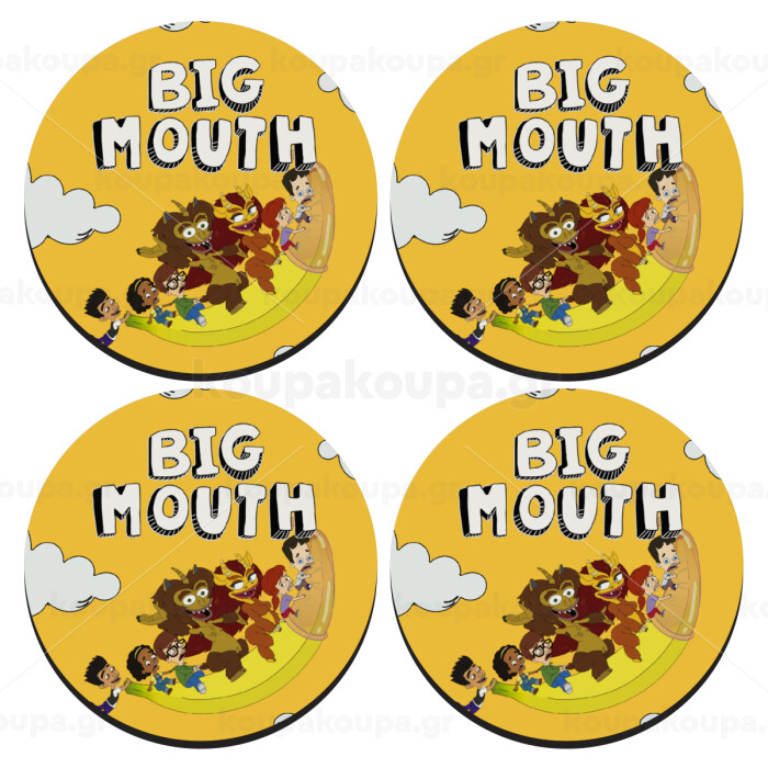 Big mouth, SET of 4 round wooden coasters (9cm)