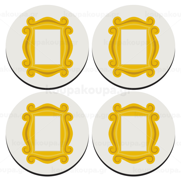 Friends frame, SET of 4 round wooden coasters (9cm)