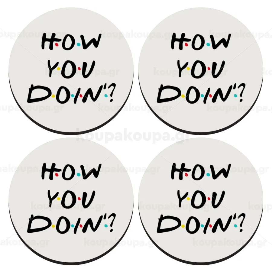 Friends How You Doin'?, SET of 4 round wooden coasters (9cm)