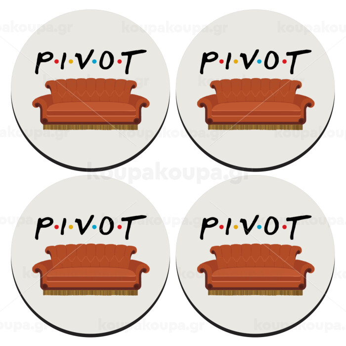 Friends Pivot, SET of 4 round wooden coasters (9cm)