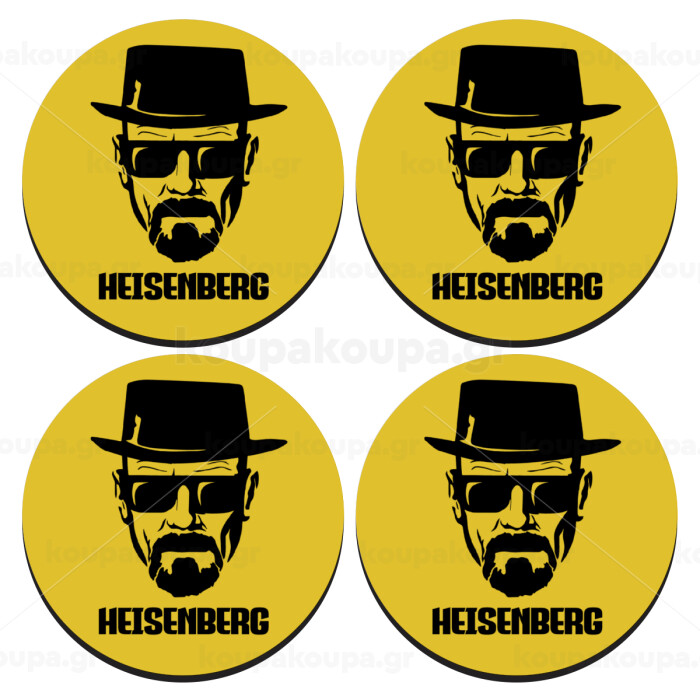 Heisenberg breaking bad, SET of 4 round wooden coasters (9cm)