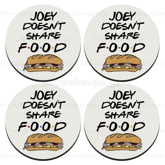 Joey Doesn't Share Food, SET of 4 round wooden coasters (9cm)