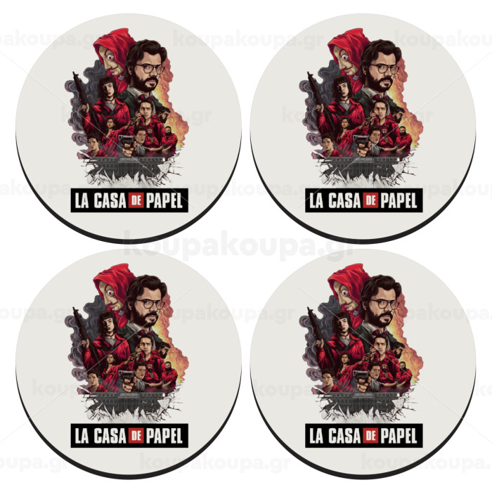 La casa de papel drawing cover, SET of 4 round wooden coasters (9cm)