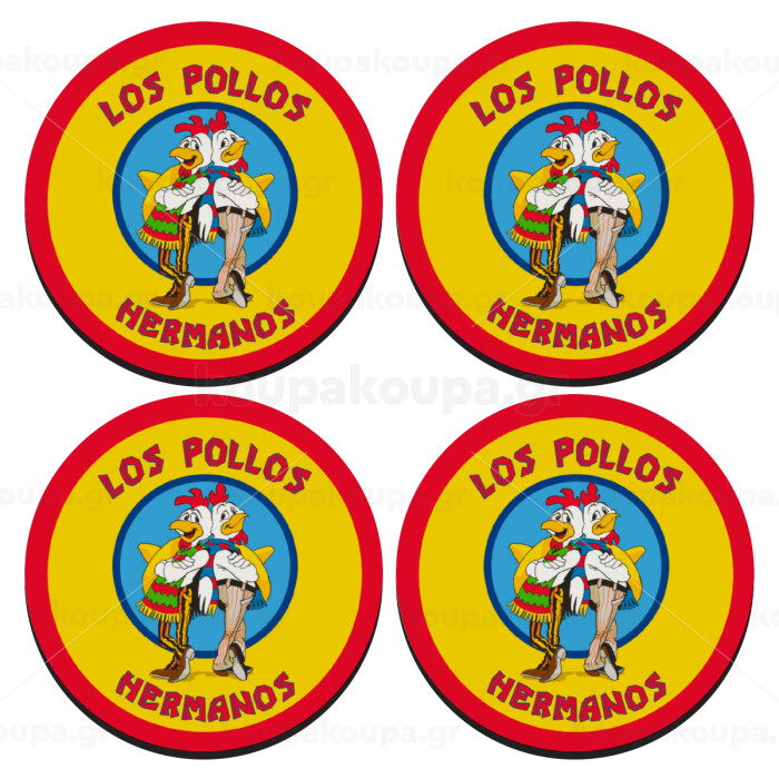 Los Pollos Hermanos, SET of 4 round wooden coasters (9cm)