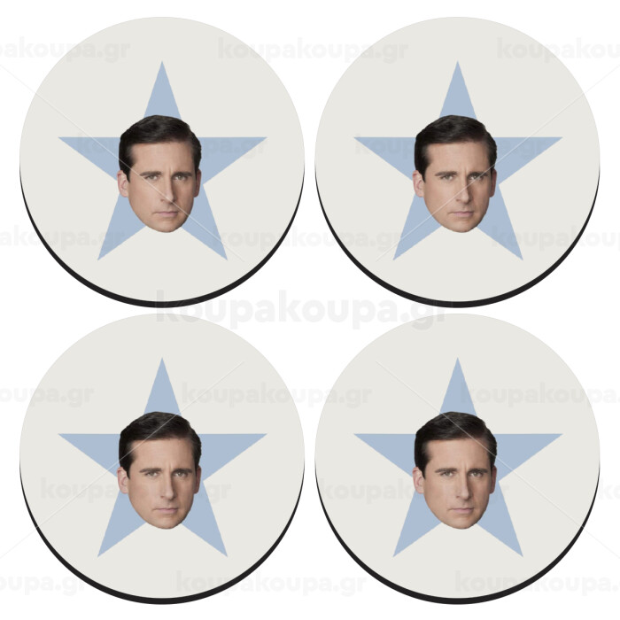michael the office star, SET of 4 round wooden coasters (9cm)