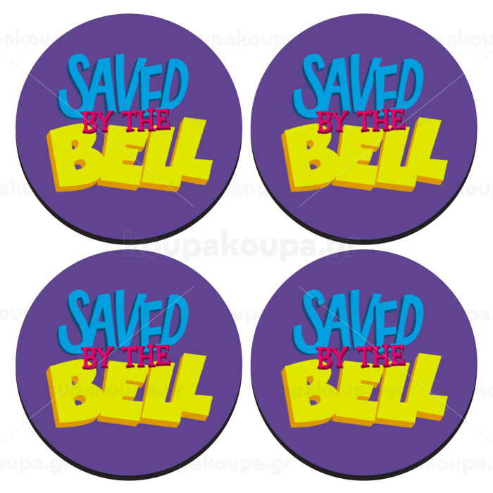 Saved by the Bell, SET of 4 round wooden coasters (9cm)