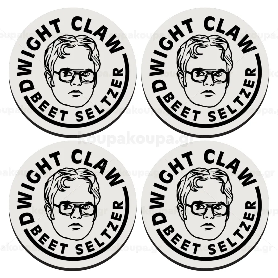 The office Dwight Claw (beet seltzer), SET of 4 round wooden coasters (9cm)
