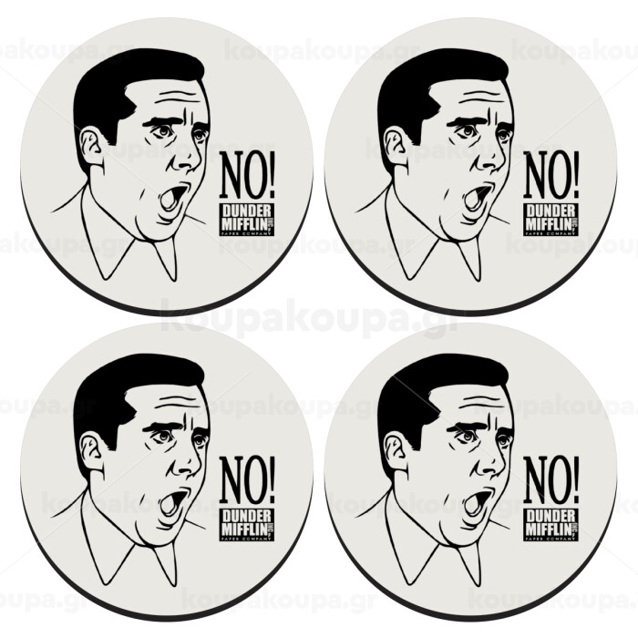 The office Michael NO!!!, SET of 4 round wooden coasters (9cm)