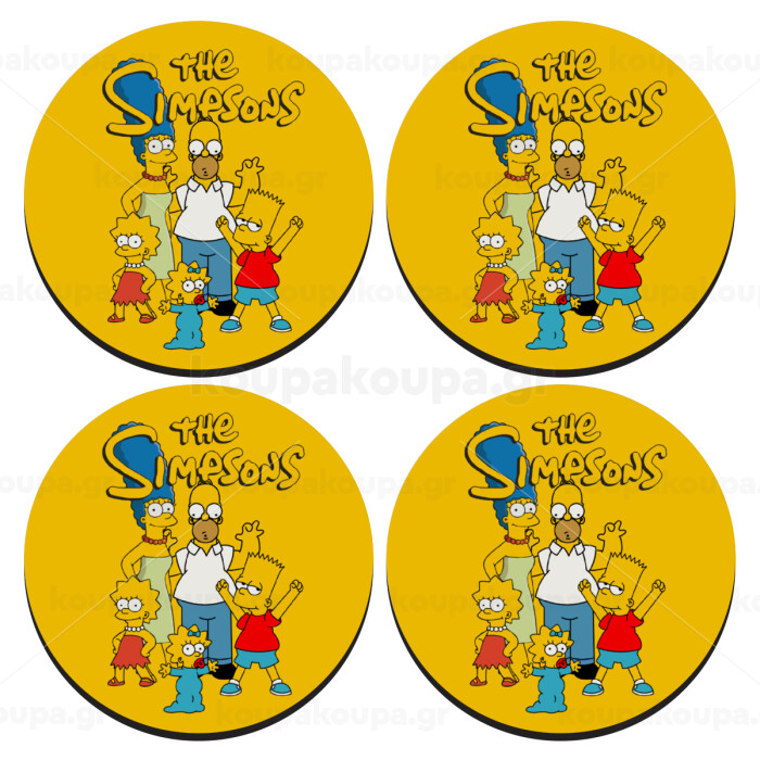 The Simpsons, SET of 4 round wooden coasters (9cm)