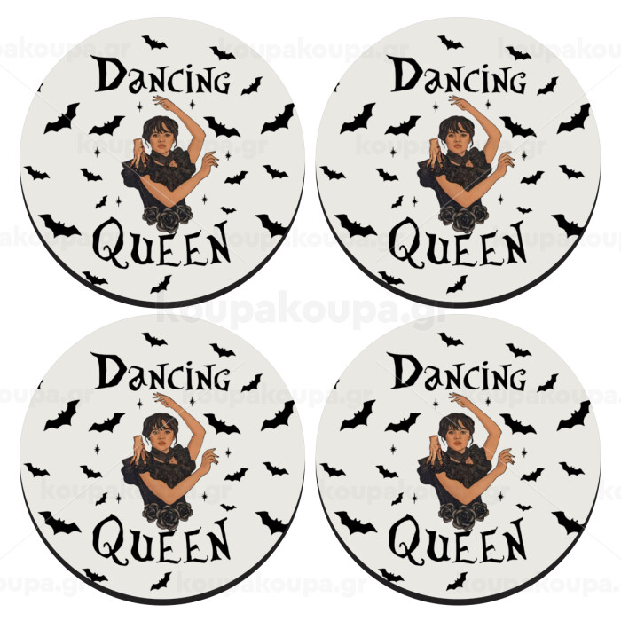 Wednesday Addams Dance, SET of 4 round wooden coasters (9cm)