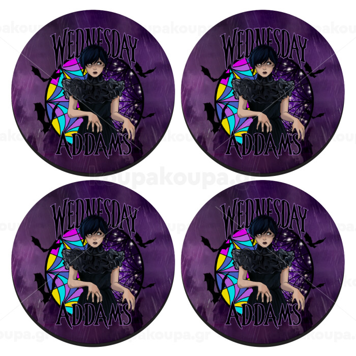 Wednesday Jenna Ortega, SET of 4 round wooden coasters (9cm)