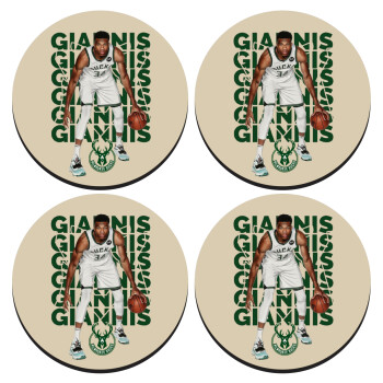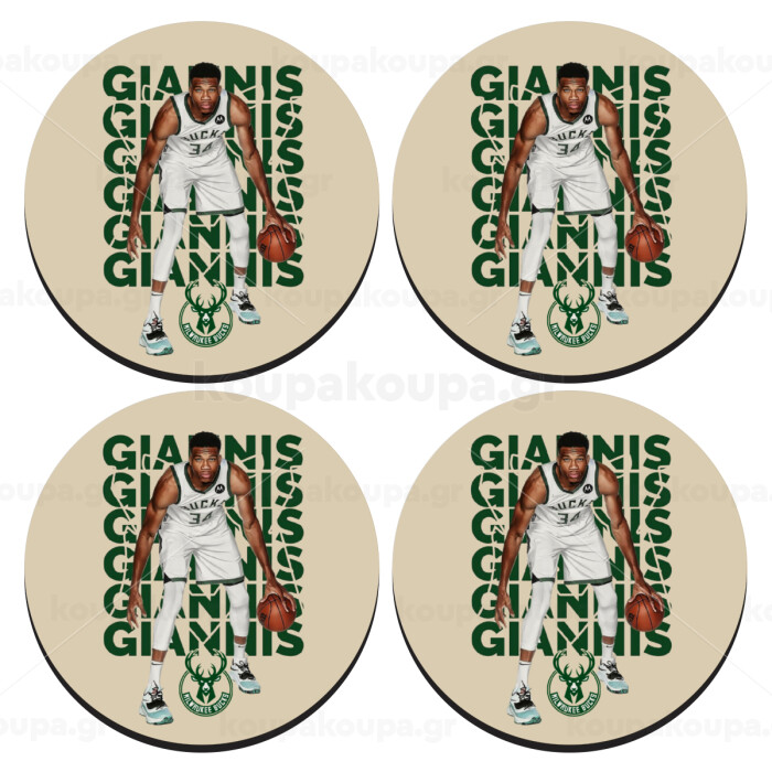 Giannis Antetokounmpo, SET of 4 round wooden coasters (9cm)