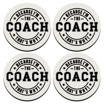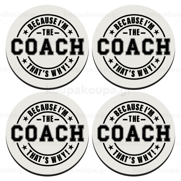 Because i'm the Coach, SET of 4 round wooden coasters (9cm)