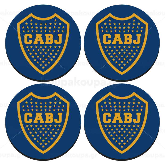 Club Atlético Boca Juniors, SET of 4 round wooden coasters (9cm)
