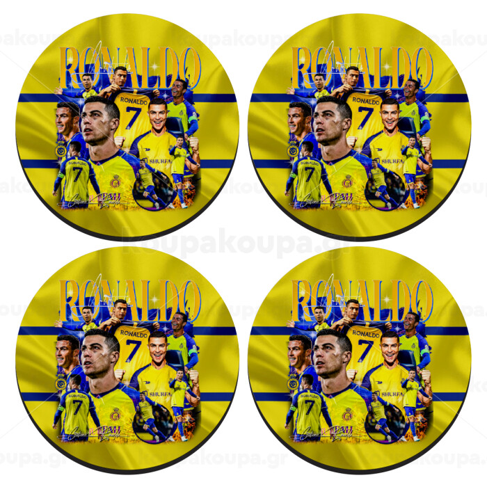 Cristiano Ronaldo Al Nassr, SET of 4 round wooden coasters (9cm)