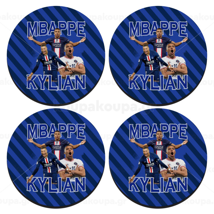 Kylian Mbappé, SET of 4 round wooden coasters (9cm)
