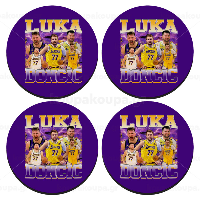 Luka Doncic Basketball , SET of 4 round wooden coasters (9cm)