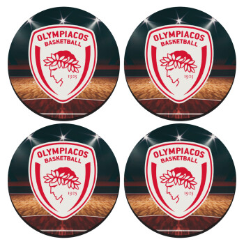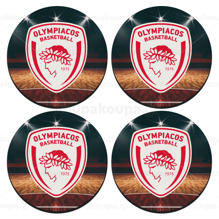 Olympiacos B.C., SET of 4 round wooden coasters (9cm)