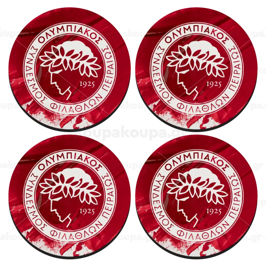 Olympiacos F.C., SET of 4 round wooden coasters (9cm)