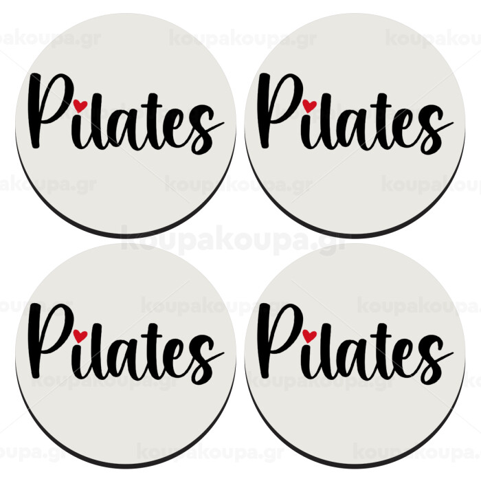 Pilates love, SET of 4 round wooden coasters (9cm)