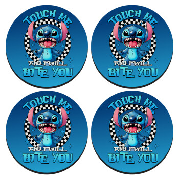 Stitch Touch Me And I Will Bite You, SET of 4 round wooden coasters (9cm)
