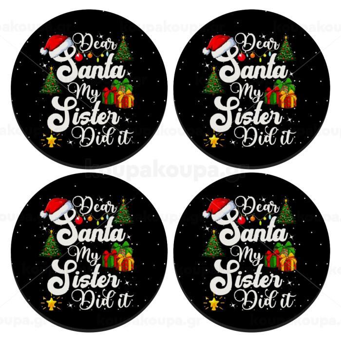 Dear santa my Sister Did it, SET of 4 round wooden coasters (9cm)