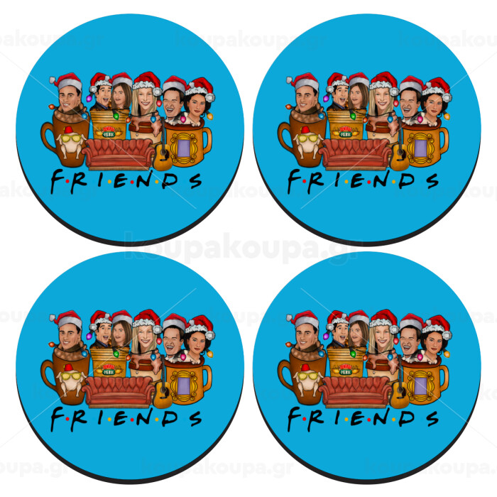 FRIENDS xmas, SET of 4 round wooden coasters (9cm)