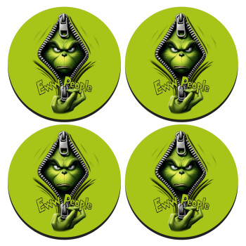 Grinch, eww people, SET of 4 round wooden coasters (9cm)