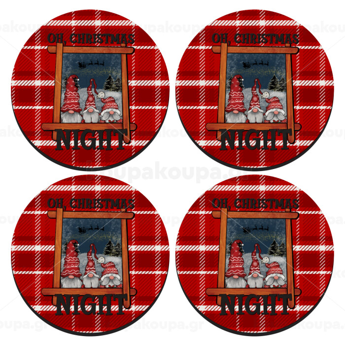 Oh Christmas Night, SET of 4 round wooden coasters (9cm)