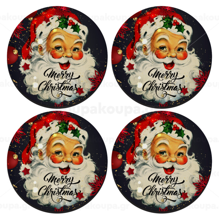 Santa vintage, SET of 4 round wooden coasters (9cm)