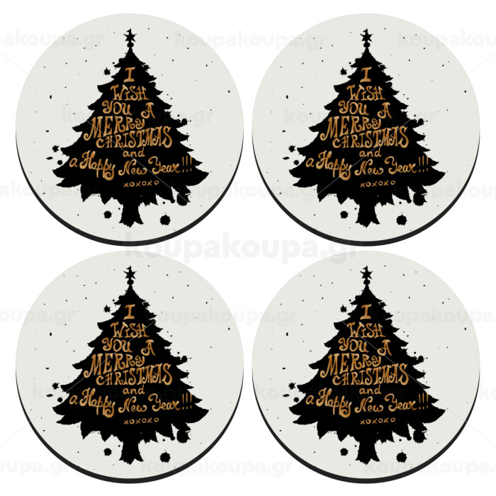 Tree, i wish you a merry christmas and a Happy New Year!!! xoxoxo, SET of 4 round wooden coasters (9cm)