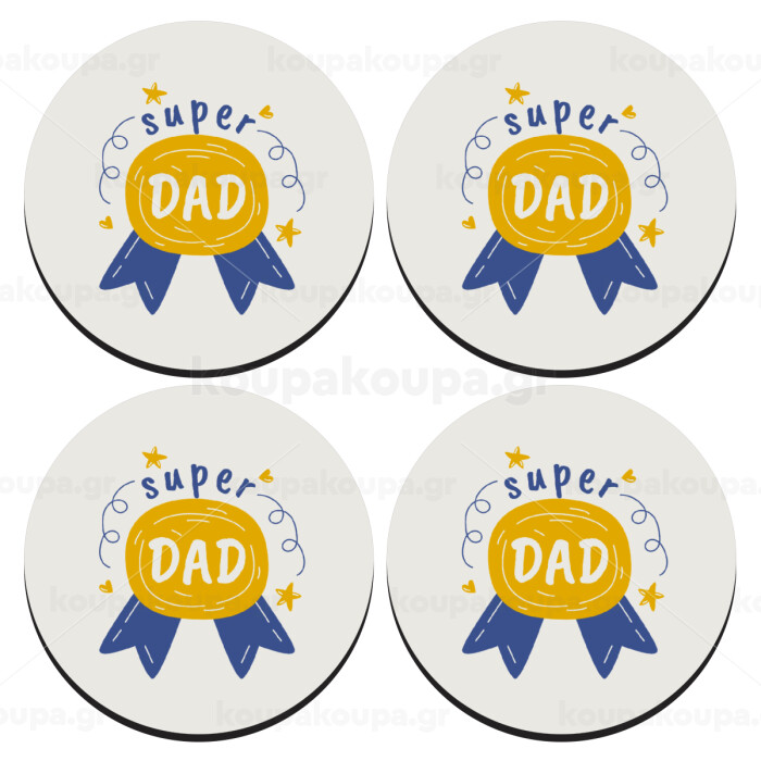 Μπαμπά είσαι για μετάλλιο, SET of 4 round wooden coasters (9cm)