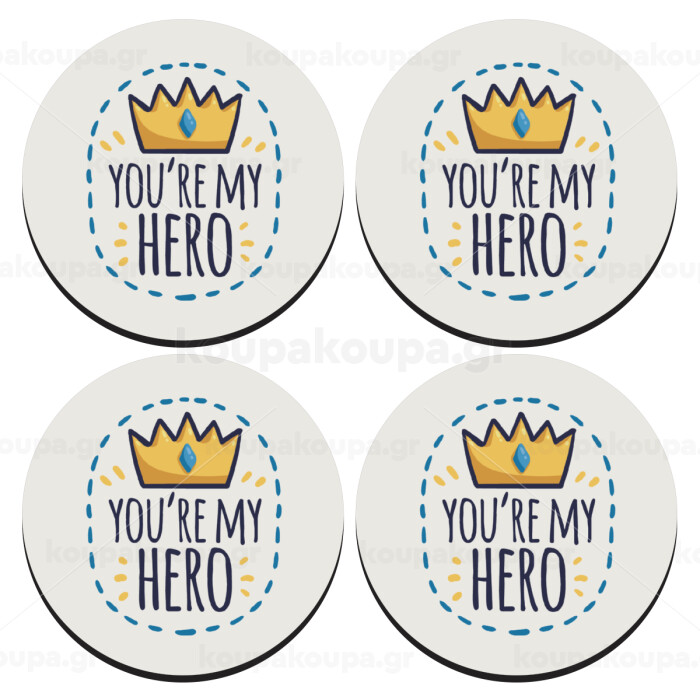 Dad, you are my hero!, SET of 4 round wooden coasters (9cm)