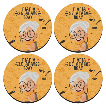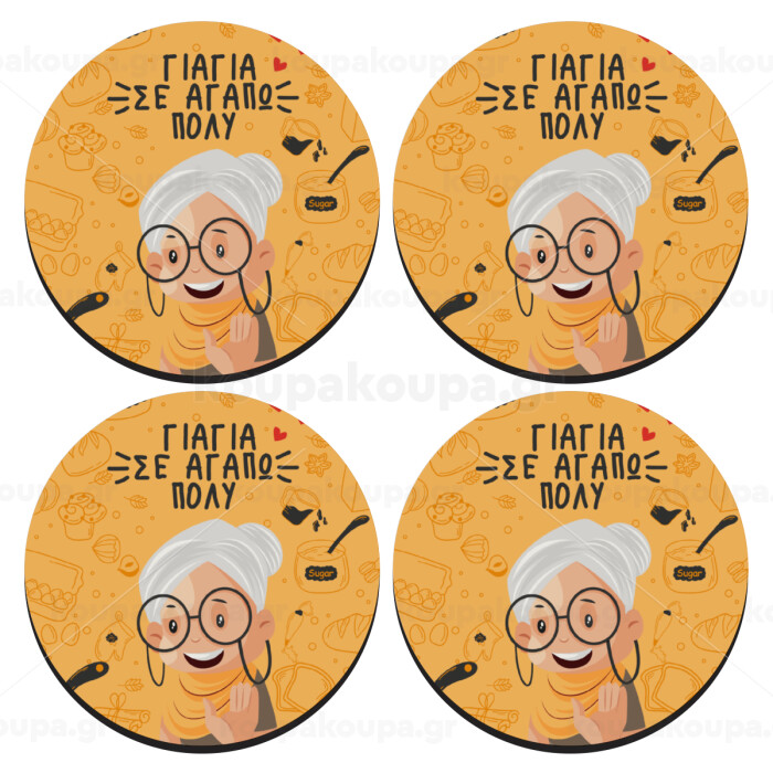 Γιαγιά σε αγαπώ πολύ!, SET of 4 round wooden coasters (9cm)
