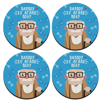 Παππού σε αγαπώ πολύ!, SET of 4 round wooden coasters (9cm)