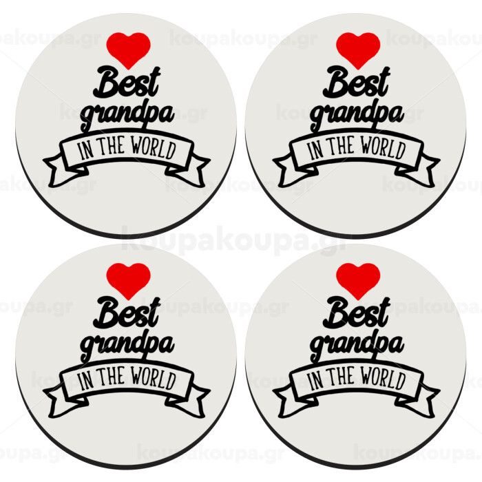Best Grandpa in the world, SET of 4 round wooden coasters (9cm)