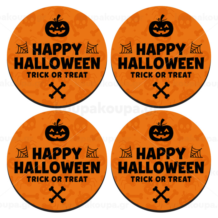 Happy Halloween pumpkin, SET of 4 round wooden coasters (9cm)