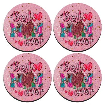 Best mom ever Mother's Day pink, SET of 4 round wooden coasters (9cm)