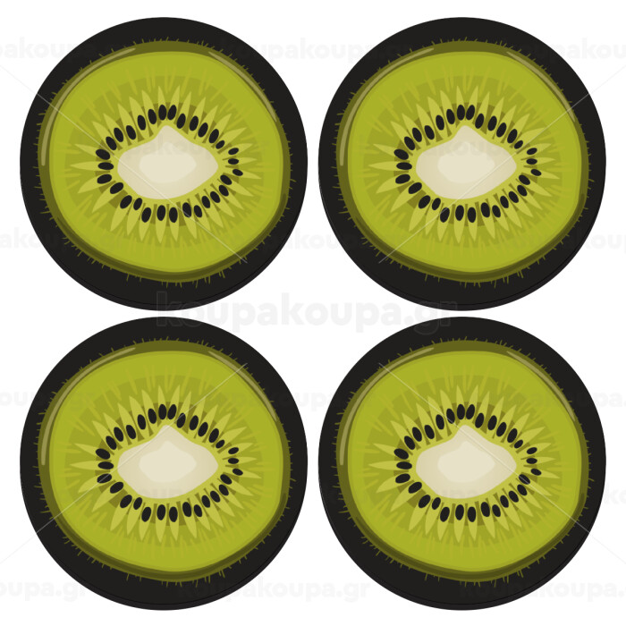 Kiwi, SET of 4 round wooden coasters (9cm)