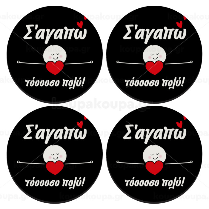 Σ΄αγαπώ τόοοοσο πολύ (Κορίτσι)!!!, SET of 4 round wooden coasters (9cm)