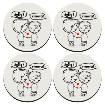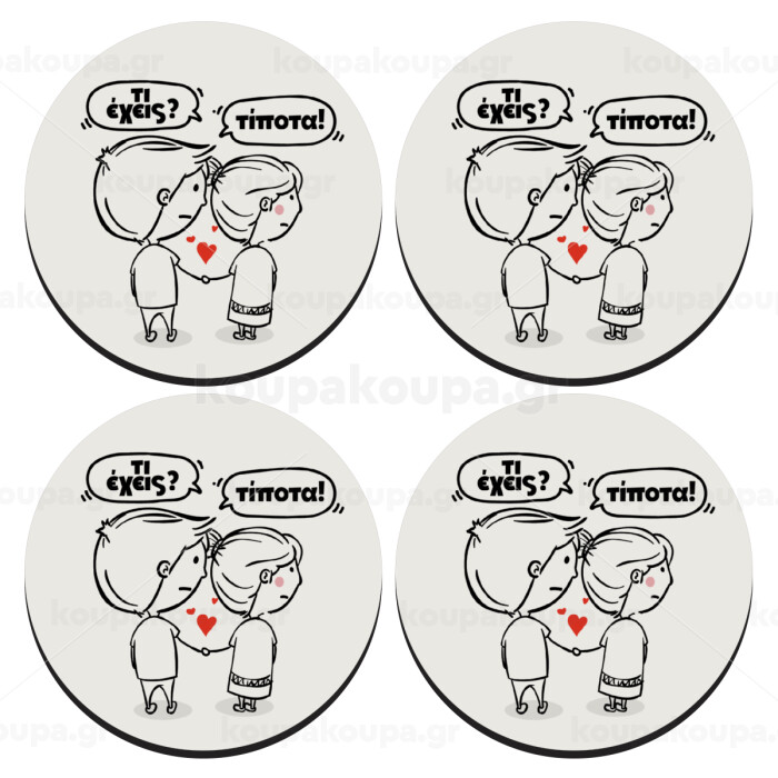 Τι έχεις? Τίποτα!, SET of 4 round wooden coasters (9cm)