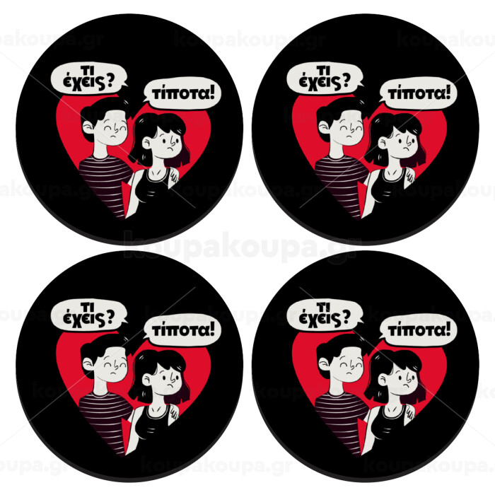 Τι έχεις? Τίποτα!, SET of 4 round wooden coasters (9cm)