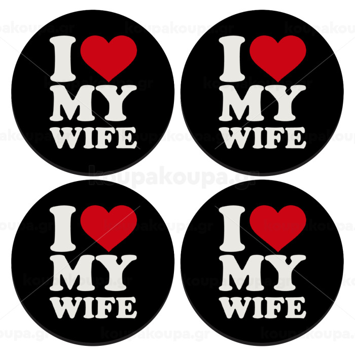 I Love my Wife, SET of 4 round wooden coasters (9cm)