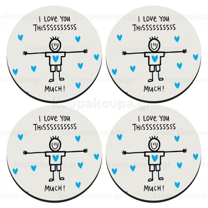 I Love you thissss much (boy)..., SET of 4 round wooden coasters (9cm)