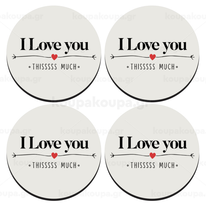 I Love you thisssss much, SET of 4 round wooden coasters (9cm)