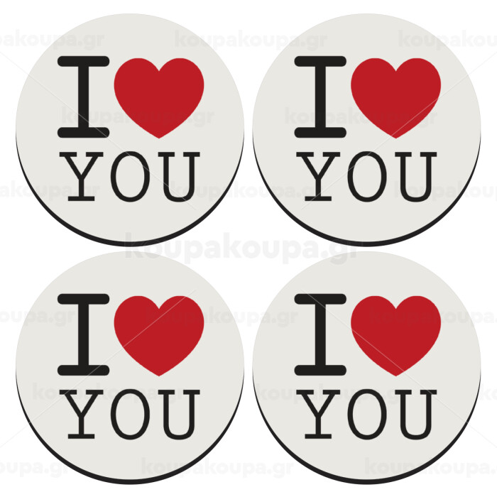 I Love you classic, SET of 4 round wooden coasters (9cm)
