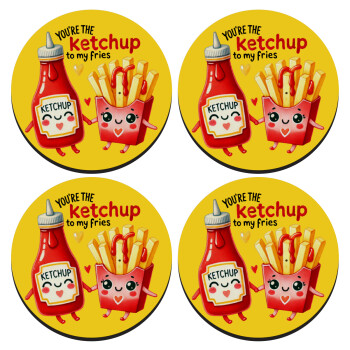 Ketchup To My Fries, SET of 4 round wooden coasters (9cm)