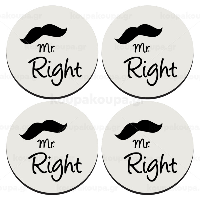 Mr right Mustache, SET of 4 round wooden coasters (9cm)