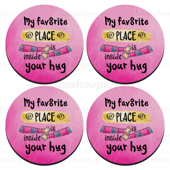 My favorite place is inside your HUG, SET of 4 round wooden coasters (9cm)