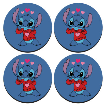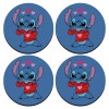 Stitch heart, SET of 4 round wooden coasters (9cm)